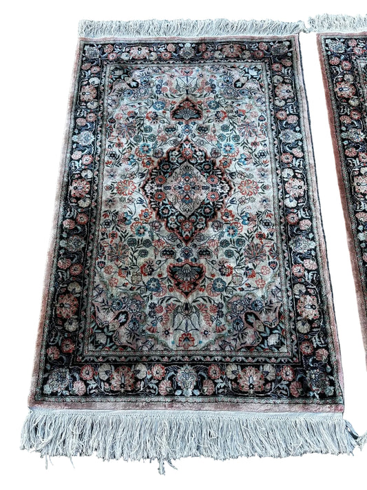 Paire de tapis persans en soie 140cm x 80cm